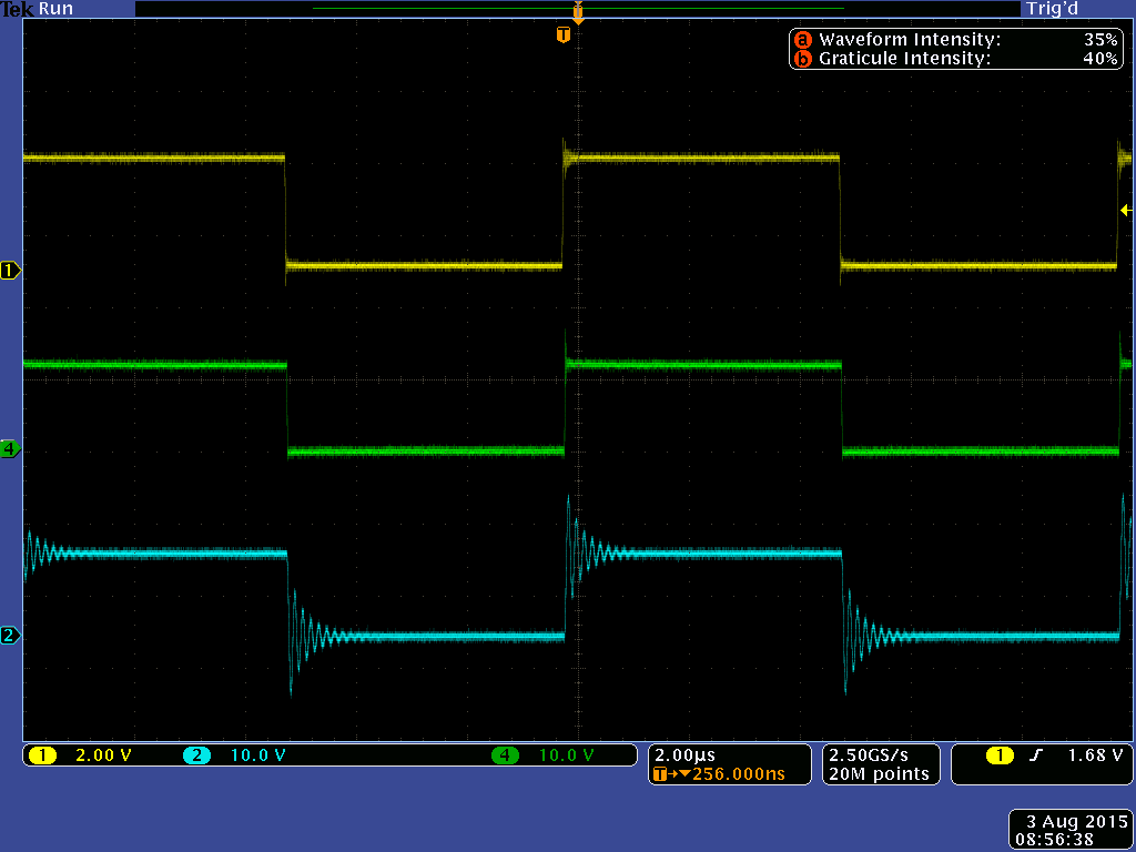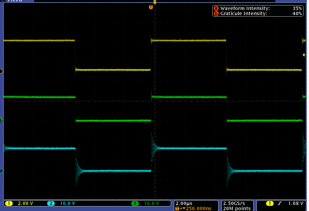 When I connect its outputs with a coil (resistance=11Ω), I can see many fluctuations. Please see Figure1.