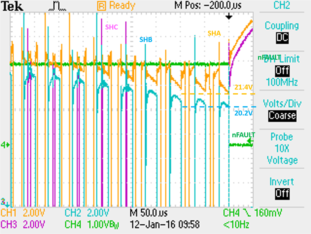VDS monitor fault for high side FET (A, B or C) occurs with the following waveform.