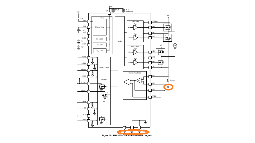 DRV8703-Q1 GND is a kind of ECU GND. Motor GND is a kind of vehicle Chassis GND.