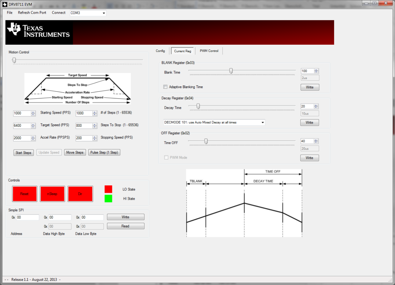 I use the Evaluation board of your Company DRV8711EVM Rev E1.