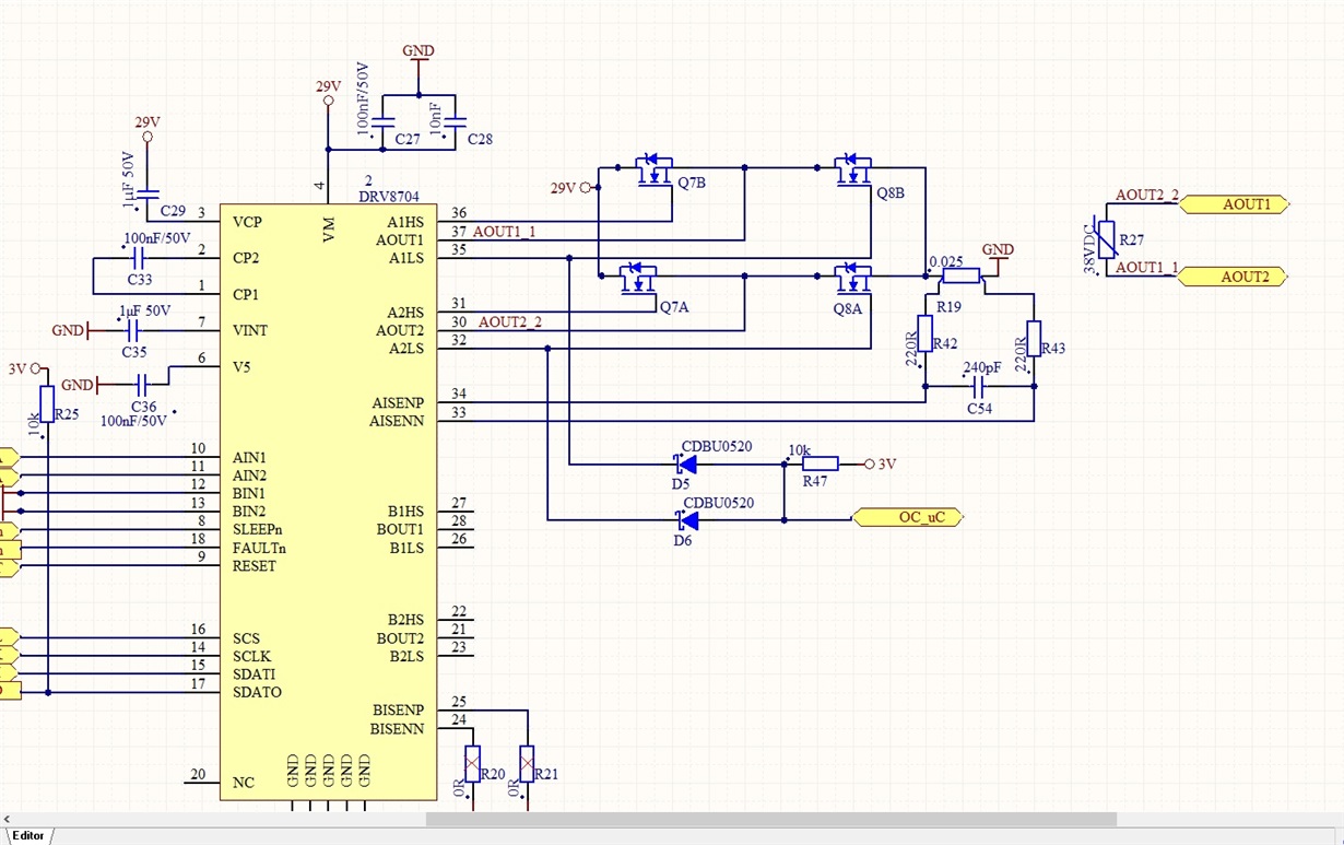 The IC is configurated to force Slow Decay mode on an overcurrent event.