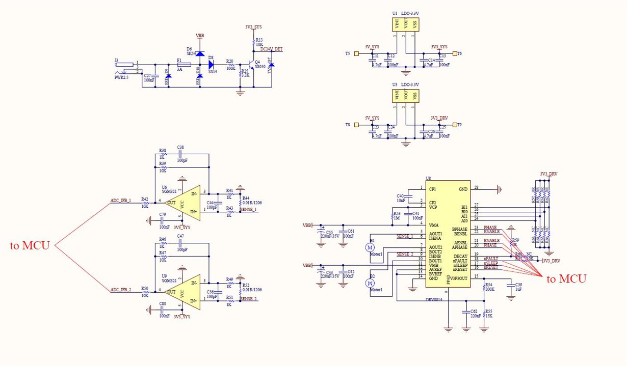 We designed a gaming console add-on device based on DRV8814. Below is the schematic of our design. Would you please give us comments if you see any issue regarding to the design? The primary issue that we are experiencing so far is that the DRV8814 is driving two motors, which will turn either clockwise of anti-clockwise direction based on certain conditions. However, the speed of the turning in either direction is not able to keep in constant. In short, the speed at which the motor is turning in anti-clockwise direction is much faster than the speed at which it is turning in clockwise direction. What we would like to achieve is to maintain constant speed of turning in either direction.