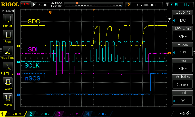 I have the same issue: the SDO singal is released by the DRV8323 too slowly. According datasheet max. 30ns, in our case about 600ns.