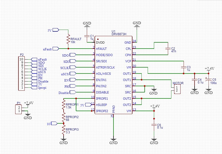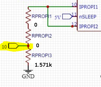 I have made a breakout board fot the DRV8873S in order to control a DC motor in PH/EN mode. I have coded a PD-position regulator for the project and now i need to read a current. According to the information in the datasheet i have calculated an appropriate Rsense: maximum current in 3.5Amps, so Rsense = 1100 * 5V / 3.5A = 1571 Ohm. The Vpropi is output from 10 pin on the picture.