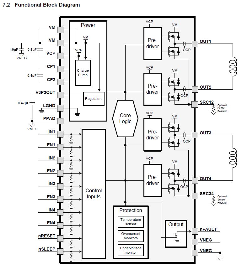 My customer has the concern if DRV8844 can support to low side sensing by adding a resistor on the ground pin to achieve closed loop control? It seems every inside bridge shares the same ground?