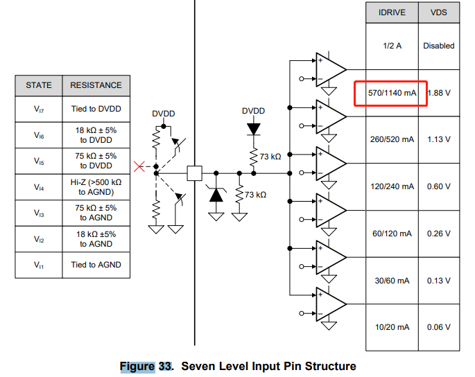 state. Because the VDS is disabled in VI7 state and there is no OVP for mos. They hope TI can offer a DRV8320H equation that can deduce the relationsip between the three(Pullup resistance / IDRIVER / VDS) so that they can use a pullup resistance smaller than 18kΩ which can let the device offer a driver current higher than 570mA/1140mA and a effective VDS voltage. Thank you !