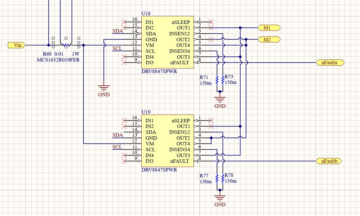 I was working on a new design. The I2C variant of the DRV8847 looked like it might work well.