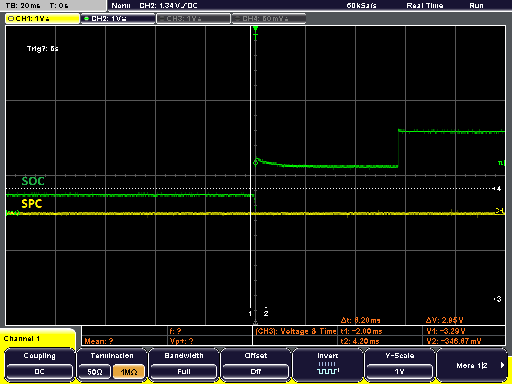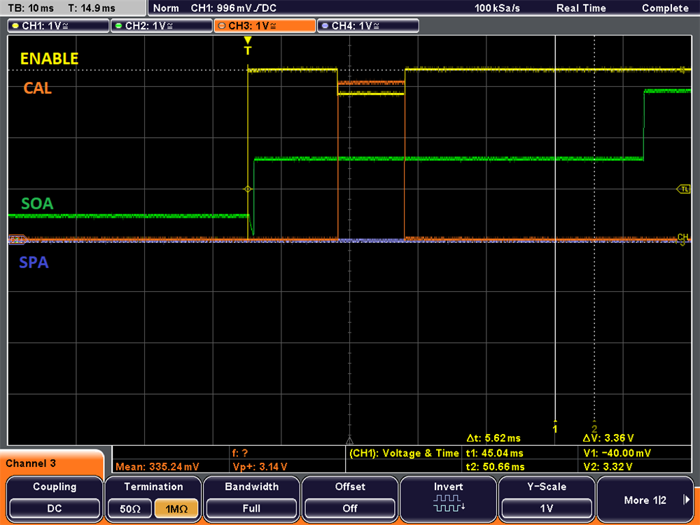 I attached scope pictures, there are: Enable, Vref, SOA, SPA signals, and time after SOA spike above 1/2 Vref (purple highlight).