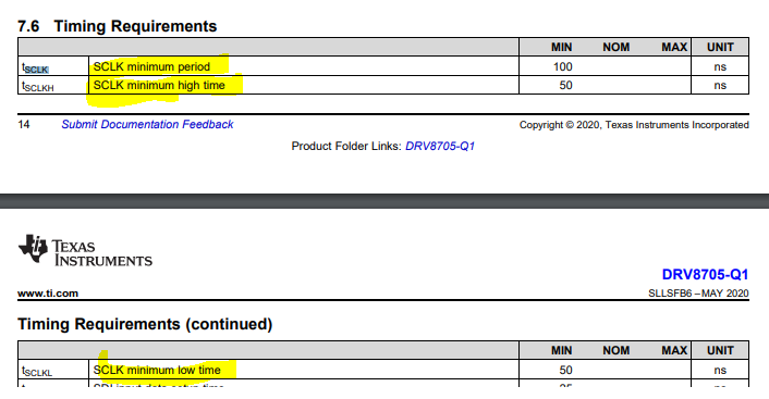 What is the maximum & minimum SCLK can be given to driver.(SPI Clock max & min frequency)