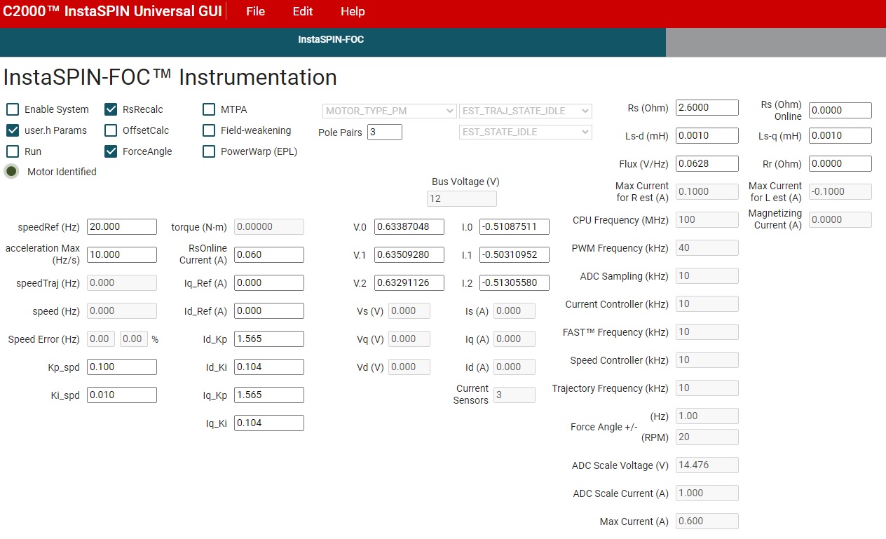 We are using the BOOSTXL-DRV8320RS and TMS320F28004x with a very small low power motor, roughly 1.8 watts. The motor voltage is 12V and draws roughly 0.15 amps @ 4000 rpm. Max motor current is 0.620 amps.