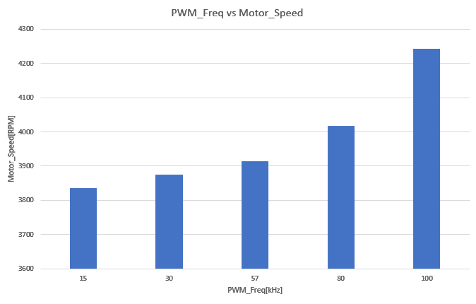 When it was fluctuated input PWM frequency from 15-kHz to 100-kHz, motor speed will be slightly reduced on near 15-kHz input.