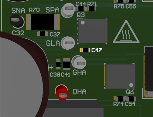 "For OLA to function correctly, place capacitors between the motor phase node and GND."