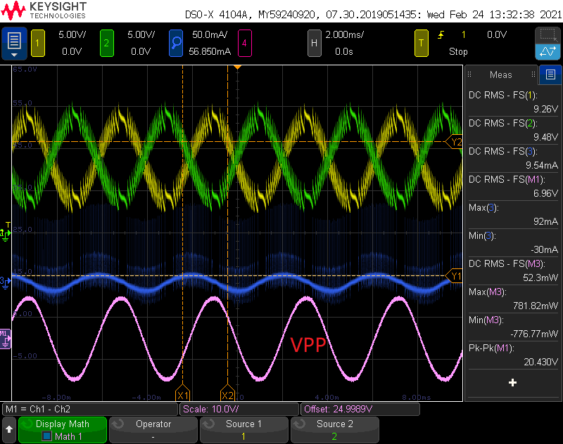 I want to set Vpp to 23V,so I changed R18 and R17 to 1.1K, it should output 23V Vpp,but actualy it output 60V Vpp? why does this happen?