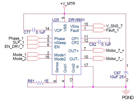 Hi, I have designed a dc motor speed control using drv8801IC, in which phase pin of drv8801 is used as direction input and enable pin as pwm input pin. Every thing is workig fine. The schematic file is as below. I have connected 1ohm resistor to sense pin which in turn allows only maximum of 500mA current through the motor coil. And the VPROPI pin can give maximum of 2.5v for 500mA current. The analog voltage from VPROPI is routed to ADC. The VPROPI is 5 times greater than the voltage across the Sense resistor. Now the problem is, I have connected an ammeter in series to motor coil and the current reading in ammeter is different from the sense resistor reading. Definately it is having difference of 20mA more. Can any body help me out in solving this issue.