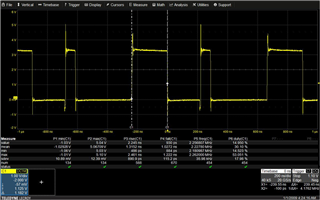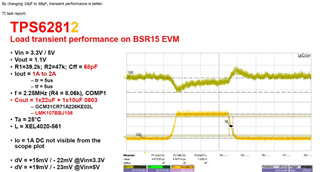 We are using TPS62810-Q1 (4A), at the current DV stage, Vin=3.3V, Vout=1.1V, Iout=1.2A, 68pF is used, because the positive margin of output voltage is better, but the SW port waveform duty cycle Unstable.