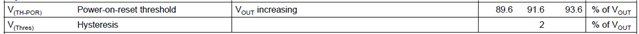 The 2% is the hysteresis, which means, once Vout exceeds Vthpor, it has to drop by 2% from the Vthpor for the PG output to change. The purpose of hysteresis is to prevent PG from toggling high and low due to small voltage changes on the output pin.