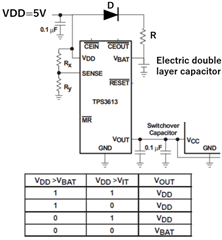 We would like to use backup-battery switchover function with Electric double layer capacitor.