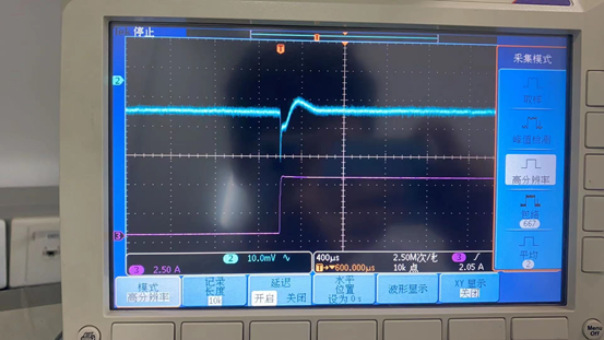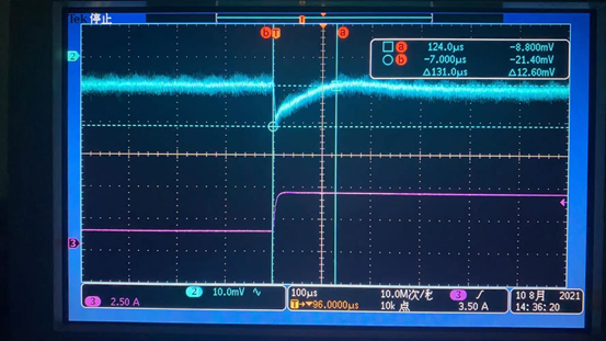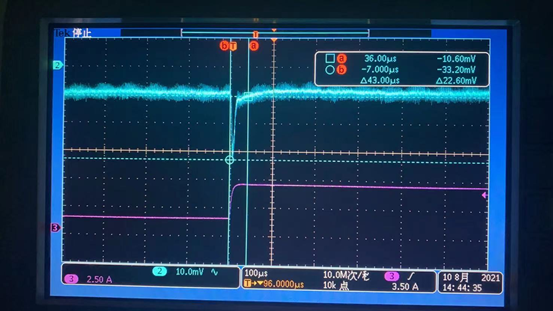Q1:On the evaluation board U2 of tps543820, the output capacitance is 2 22uF and 1 47uF, the slope compensation is 4pf, and the load change is 0-5A. Why is there a step on the output waveform. Why does the output have overshoot but no oscillation?