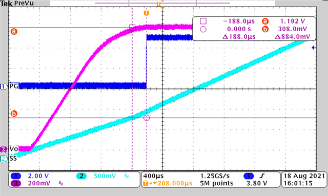 I think it is Delay 200us after FB PIN reaches 0.558V, but the measurement result is not