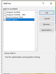4.) In the Add-Ins dialog box, select Solver Add-in, and then click OK.