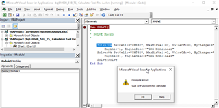 I am attempting to use the provided NTC spreadsheet and visual basic package for the BQ51050B (SLUS629) to calculate resistor values, but VBA fails to compile as is.