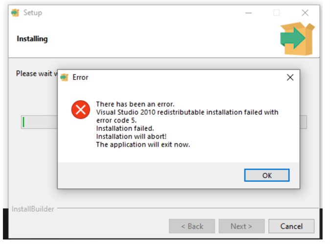 My Cusotmer is to install the Battery Management Studio software and it keeps giving error code 5