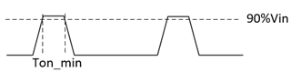 (1) Minimum on time, measured at 90% to 90% and 1-A loading. What's the meaning of "90% to 90%"? Is the minimum on time for high side MOS or low side MOS or both?