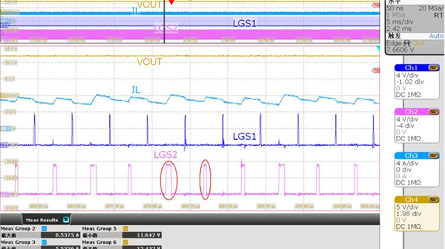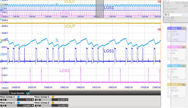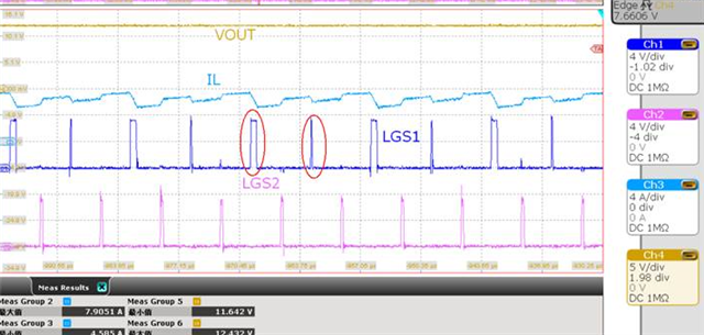 2.VIN=11.3V~11.7V,VOUT=12V/IO=6A, transition mode, low side gate signal shows not consist.
