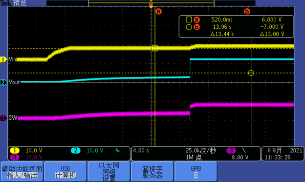 1.VIN=14.3V~15V,VOUT=12V/IO=6A, at transition to BUCK, the output not stable, the waveform shows below