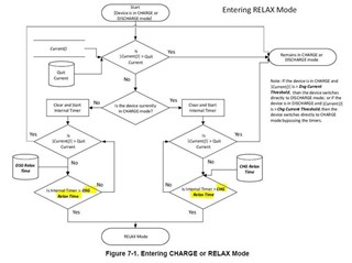 In order to enter relaxed state, the current needs to be lower than the quit current, then an internal timer is set and must exceed “CHG Relax Time” or “DSG Relax Time”.