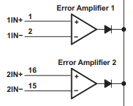 The error amplifier outputs are diode connected, as shown here: