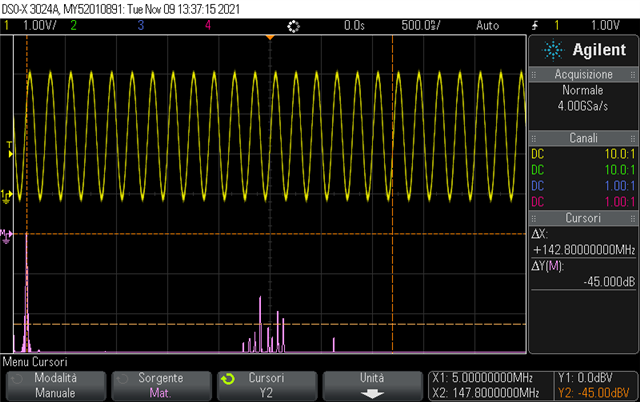 They would like to use the LMG1020 device for switching a GaN device GS66508B at 27.095 MHz (So there is a periodic signal not just one pulse). In the preliminary design, they used 22 Ohm resistors between OUTH, and OUTL (connected in parallel) and the GaN input at the gate.