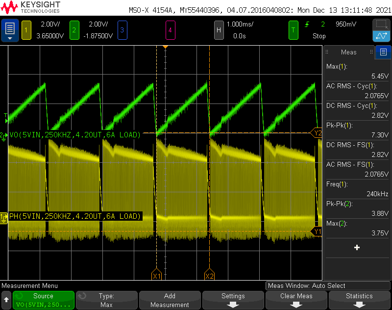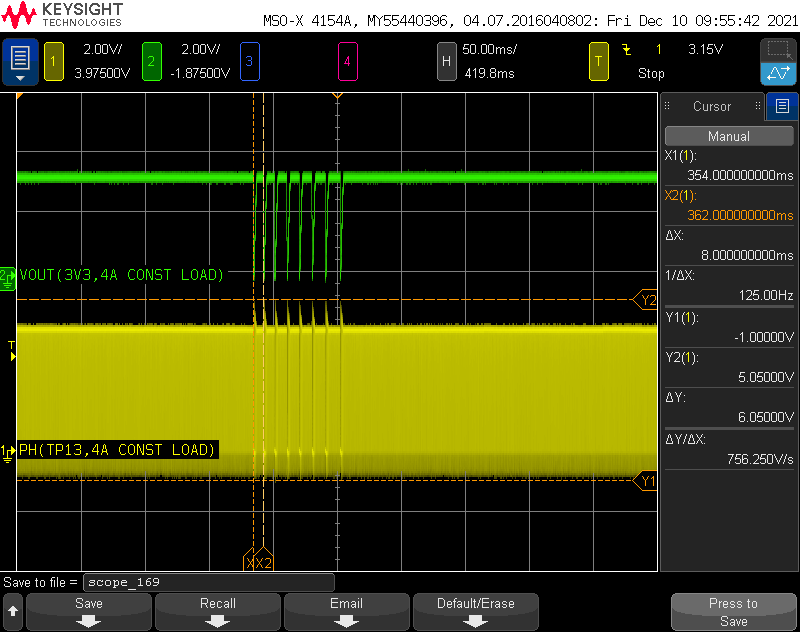 2) When load current of 3A and 5A switched continuously with the delay of 100ms and 500ms respectively.