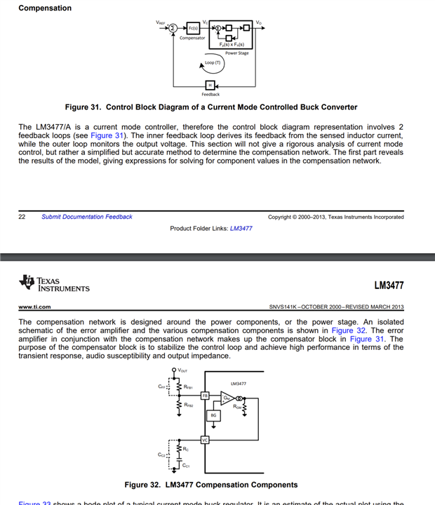 "With the power stage known, a compensator can be designed to achieve improved performance and stability. The LM3477/A will typically require only a single resistor and capacitor for compensation, but depending on the power stage it could require three or four external components"