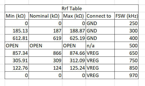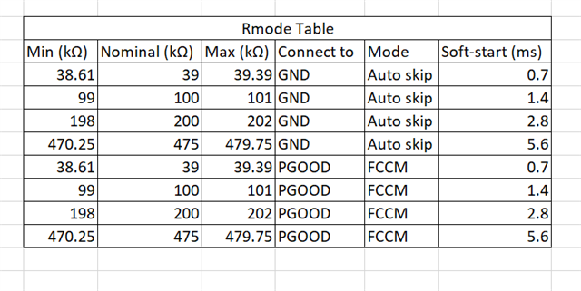 Could you let me know Min/Max requirement for resistor value of Rmode and Rrf?