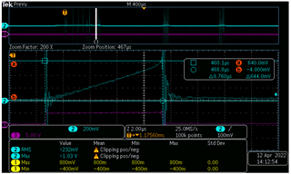 But if i use high input voltage such as 150Vac, my unit can't startup properly and I can see the CS was hit 0.6V (on duty is suddenly go from <3us to >5us)