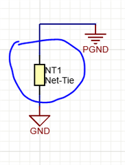 Can you show where they made the connection between AGND and PGND? Please highlight AGND, PGND, and the connection between the 2.