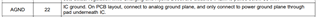 Pin 22 is AGND and we recommend connecting it to power ground through the pad underneath the IC.
