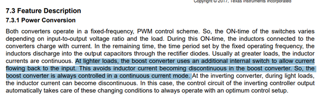 I have some questions regarding current limit in TPS65130. Customer had drew current over current limit which is 800mA and IC didn't seem to be switching as it exceeded limit. However the BSW pin didn't go to High at the same time. Since PMOS is ON, the input voltage and current is directly connected output.