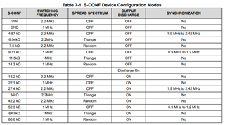 In the data sheet, Table 7-1 (S-CONF Device Configuration Modes) is telling about the device configuration modes.
