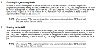 I’m using the PMIC – P/N: TPS65086470RSKT and I’m programming the second OTP memory according to my PMIC requirements.