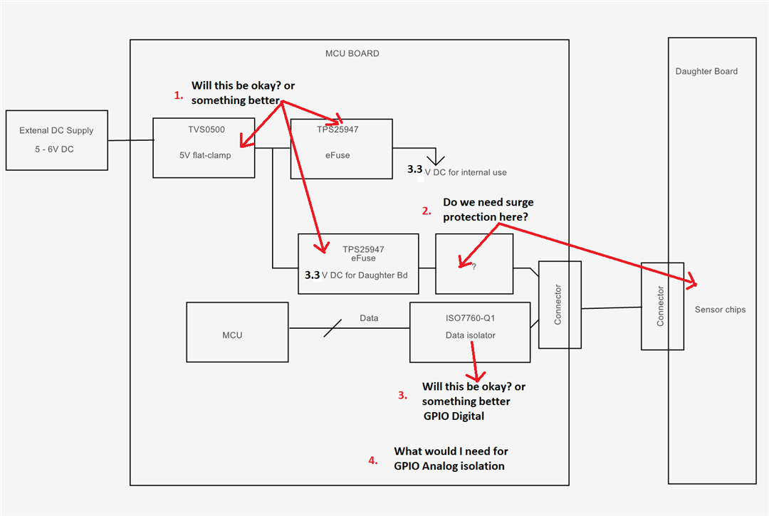 On the MCU board, I want to protect the input voltage against surge, EMI, clamp the voltage to 5.6V max, use efuse for further voltage and current control.
