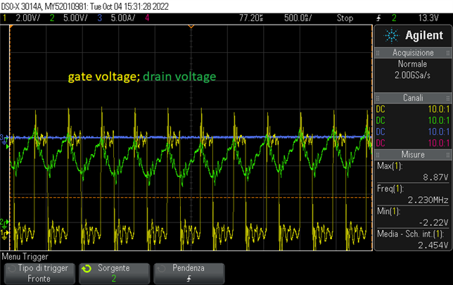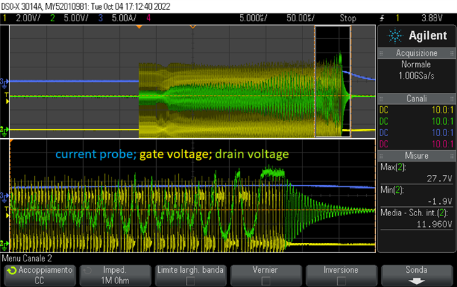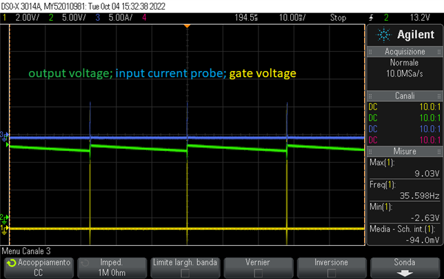 The problem I am having is that when the load (20 Ohm resistor) is connected, the output voltage drops and the bench power supply goes in current limit mode due to the large currents flowing in the MOS.