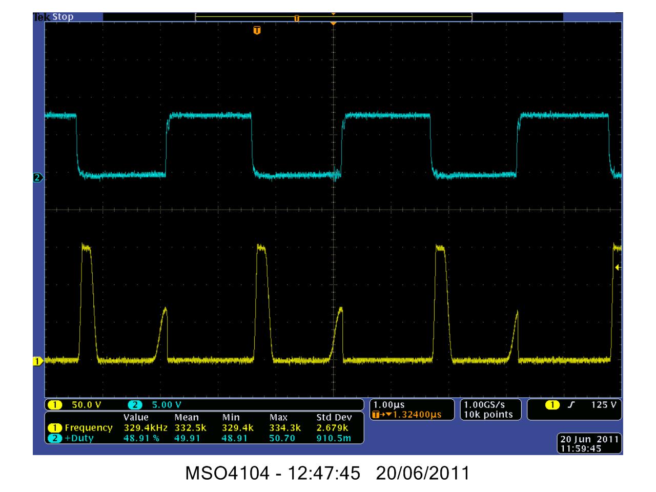 - I've selected CT = 100pF and RT = 510K, this gives the 320kHz switching frequency.