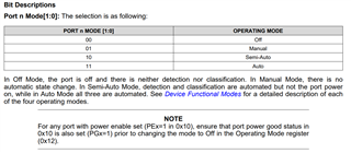 Depending on which operating mode you're looking for, you'll need to configure the PSE 'Port n Mode' to the desired operation (page 58 of the datasheet):