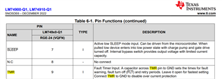 In the datasheet of LM74910 shown, the TMR is to set delay time