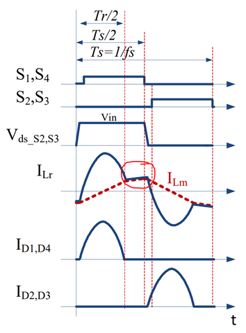 As the frequency goes lower and lower, ILM (the ringing current) current goes towards zero which causes ZCS.