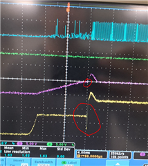 Hi, we use the TPS40051 to get in the output 5.1V @6A and it is working fine. This design has been working for a while but we were trying to a new Mosfet in the SMPS for supply chain and we noticea weird behavior in the controller. We remove the new mosfets and soldered the older mosfet and the failure was still there. The wrong behavior is: