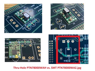 We have some SMT parts, PTN78000WAZ, otherwise identical to PTN78000WAH and are trying to figure out whether we can drop them into the board.