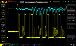 Here's what VDD6 (Ch2) and SDN6 (Ch1) look like during the stuck phase. As you can see there is a 6 msec periodic rampup of VDD6: